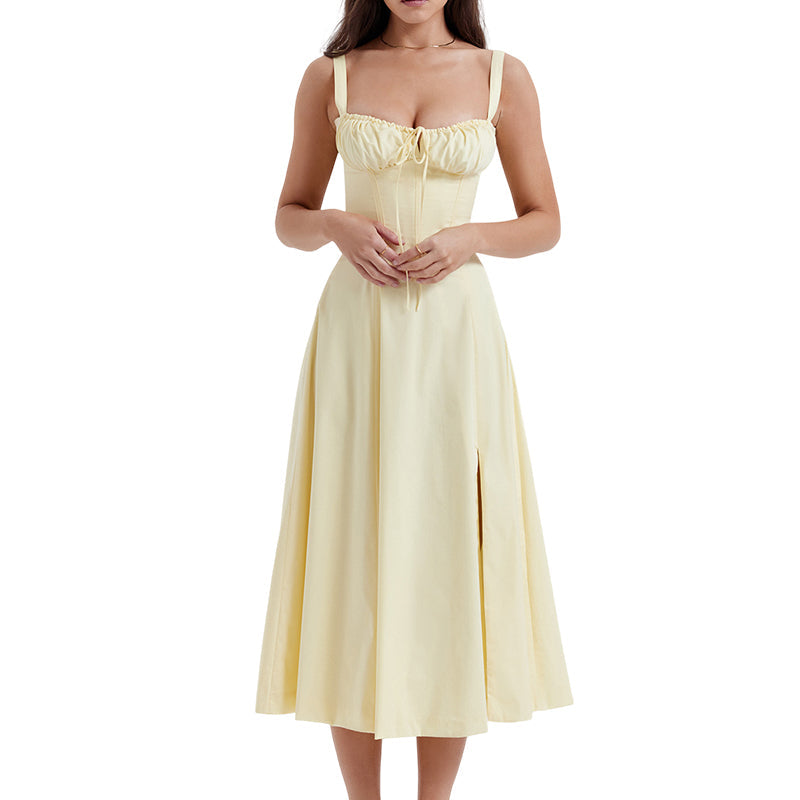 Print Bandeau Sundress Solid Color Fashion Sling Dress